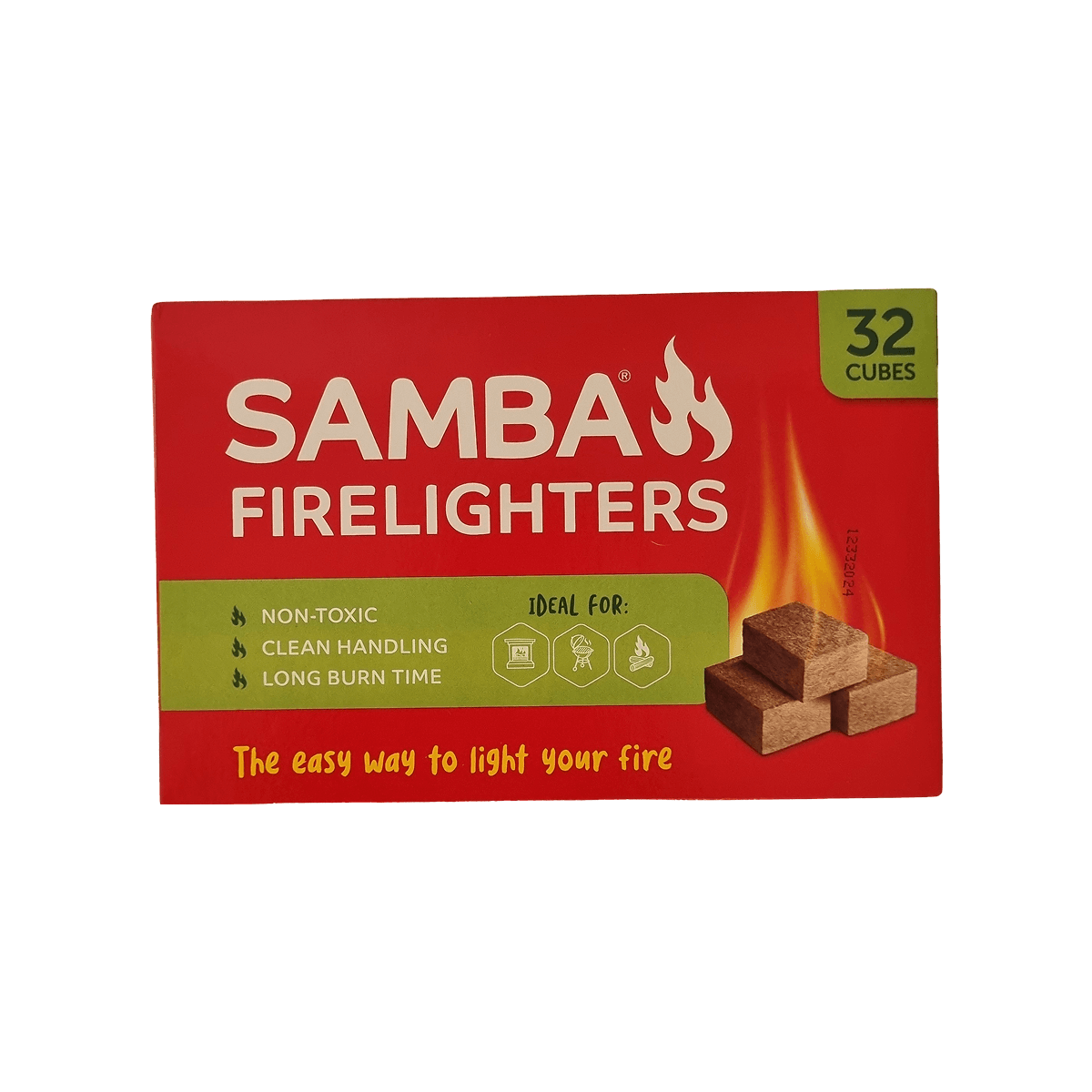 Made from Wood and Wax, Samba Natural Firelighters provide clean handling without odour, making them ideal for charcoal fuelled barbecues and wood fires.